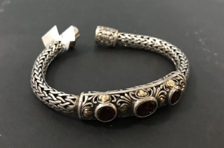 18k Yellow Gold Sterling Bangle Bracelet Citrine, signed BJE, marked .925, and 18K. 18k Yellow Gold Sterling Bangle Bracelet Citrine, signed BJE, marked .925, and 18K.
