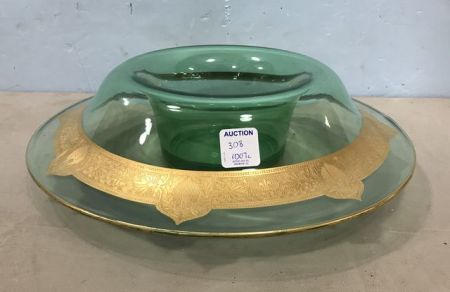 Large Vintage Venetian Glass Bowl, large gold band trim, 3"h., 13"dia. Large Vintage Venetian Glass Bowl, large gold band trim, 3"h., 13"dia.