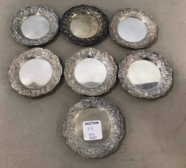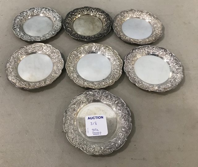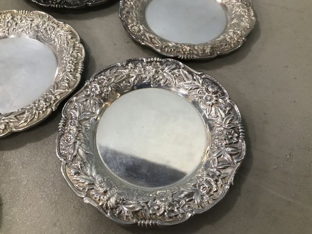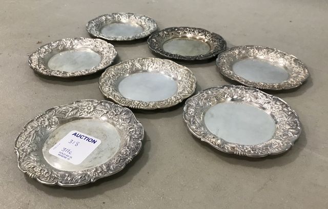Set of Six S.Kirk & Son Sterling repousse Butterpats, 3 1/4"dia. Set of Six S.Kirk & Son Sterling repousse Butterpats, 3 1/4"dia.