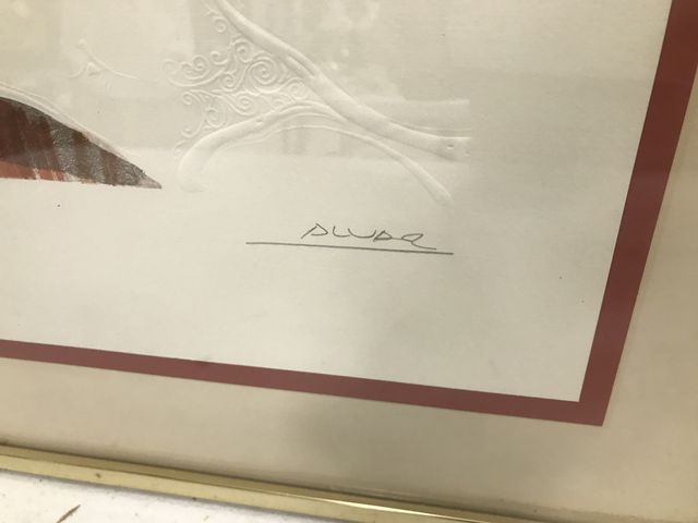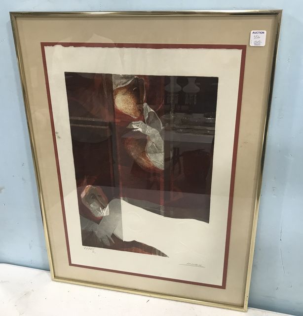 Mixed Media of "Lady" signed lower right Sunol Alvar Print, lithograph, and numbered, embossed paper, framed, 26"h., 20"w. Sunol Alvar, born in Montgat, Spain, known for his technical expertise. Mixed Media of "Lady" signed lower right Sunol Alvar Print, lithograph, and numbered, embossed paper, framed, 26"h., 20"w. Sunol Alvar, born in Montgat, Spain, known for his technical expertise.