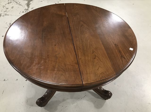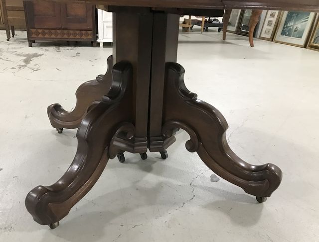 Renaissance Revival Round/oval Dinning Table, three leaves, on casters, round with pedestal, good condition, 29"h., 47"dia. Renaissance Revival Round/oval Dinning Table, three leaves, on casters, round with pedestal, good condition, 29"h., 47"dia.