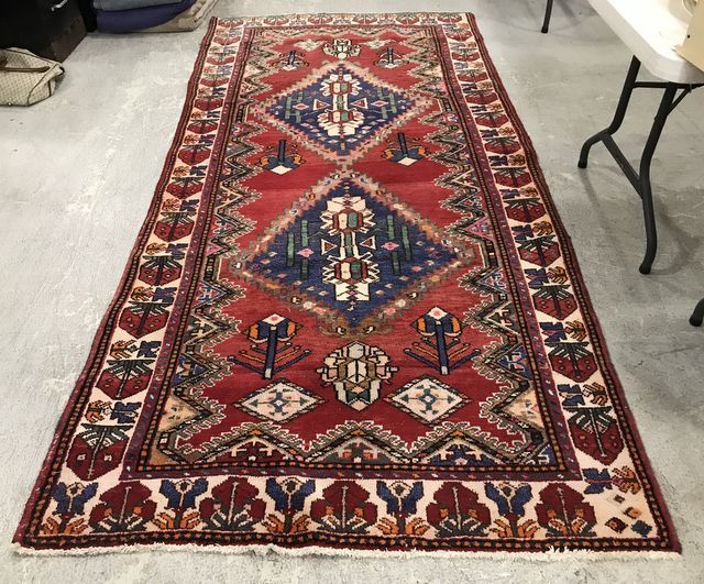 Nice Iran Hand Knotted Rug, 100 % wool, creme, red, blue, and etc. No stains, 4'9 x 9'11. Nice Iran Hand Knotted Rug, 100 % wool, creme, red, blue, and etc. No stains, 4'9 x 9'11.