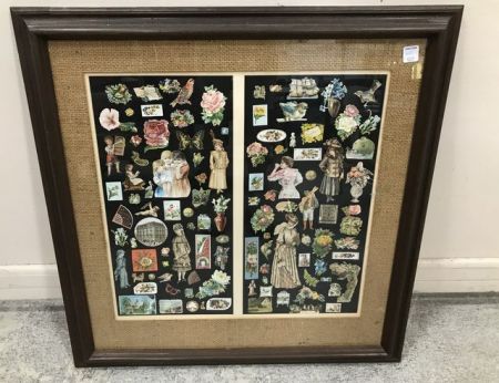 Framed Early 1900's Ladies and Flower collectible stickers, 29"h., 28"w. Framed Early 1900's Ladies and Flower collectible stickers, 29"h., 28"w.