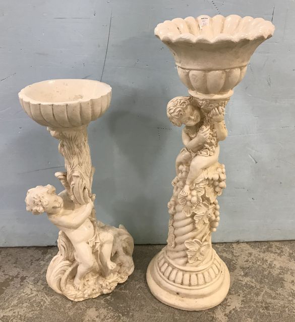 Two Ceramic Figural Planters, hand painted, child on vine, two piece mold, made in Mexico, tallest is 33"h., 12"dia. Two Ceramic Figural Planters, hand painted, child on vine, two piece mold, made in Mexico, tallest is 33"h., 12"dia.