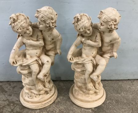 Pair of Ceramic Hand Painted Children Statues, two piece mold, one has chip on top, 21"h. Pair of Ceramic Hand Painted Children Statues, two piece mold, one has chip on top, 21"h.