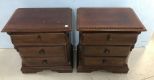 Broyhill Pair of Modern Cherry Night Stands, three drawers, one has top wear, 27"h., 25"w., 16"d. Broyhill Pair of Modern Cherry Night Stands, three drawers, one has top wear, 27"h., 25"w., 16"d.