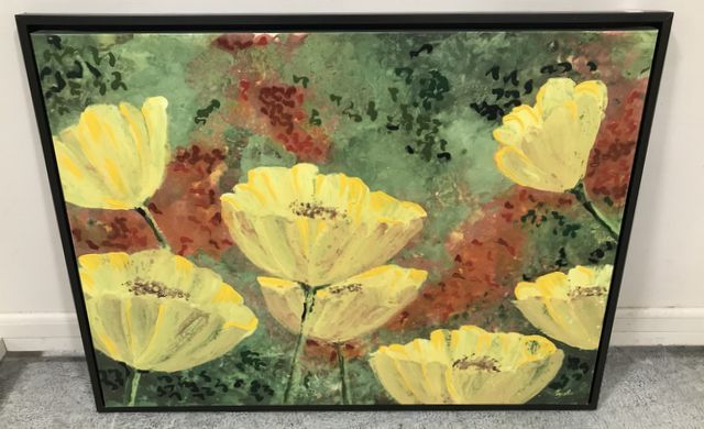 Large Painting of Flowers, framed, signed lower right, 32"h., 42"w. Large Painting of Flowers, framed, signed lower right, 32"h., 42"w.