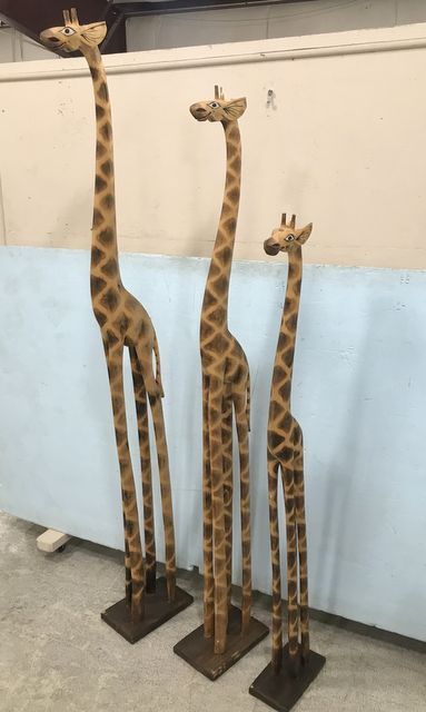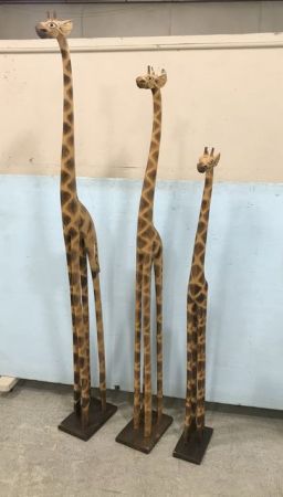 718 Three Large Wood Giraffe Statues