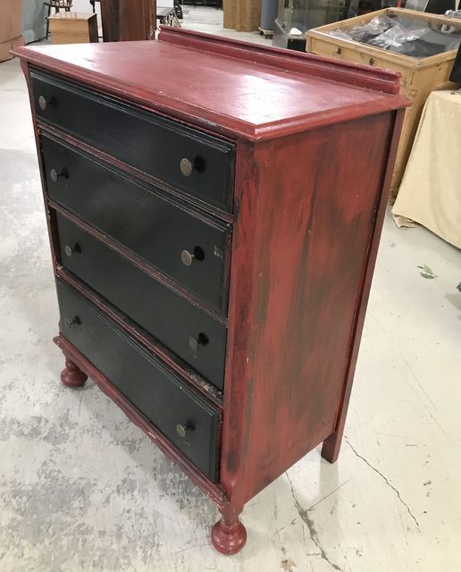 Vintage Painted Chest of Drawers, mahogany, painted red with black drawers, drawers need work, 44"h., 34"w., 18"d. Vintage Painted Chest of Drawers, mahogany, painted red with black drawers, drawers need work, 44"h., 34"w., 18"d.