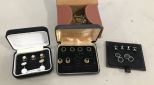 Collection of Vintage Cuff Links, gold tone pairs, mother of pearl set, group of red stone links. Collection of Vintage Cuff Links, gold tone pairs, mother of pearl set, group of red stone links.