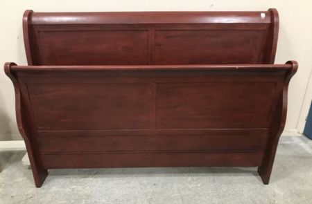 Modern Painted Red Sleight Bed, has wood rails, Queen size. Modern Painted Red Sleight Bed, has wood rails, Queen size.