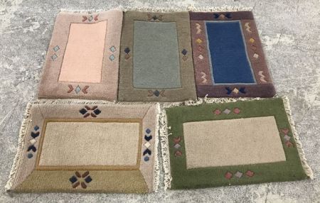Five wool throw rugs, India, five total. Five wool throw rugs, India, five total.