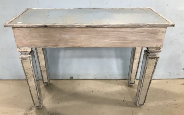 Painted White Mirrored Wall Console Table, legs need tightening, 30"h., 42"w., 18"d. Painted White Mirrored Wall Console Table, legs need tightening, 30"h., 42"w., 18"d.