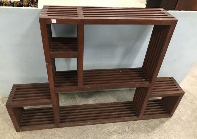 Mid Century Red Cedar Plant Display stand, divided sections, unique design, 48"h., 68"w., 10"d. Mid Century Red Cedar Plant Display stand, divided sections, unique design, 48"h., 68"w., 10"d.