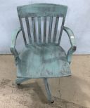 Painted Mission Style Office Chair, oak, on wheels, arm chair, 35"h. Painted Mission Style Office Chair, oak, on wheels, arm chair, 35"h.