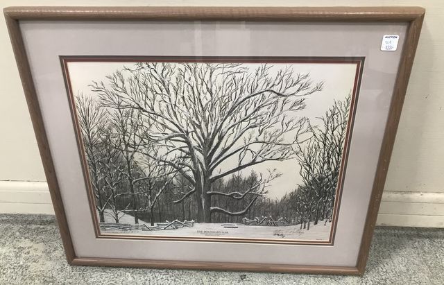 "The Boundary Oak" Print by Otis Polley, pencil signed, Abraham Lincoln Birthplace, numbered 480/500, 23"h., 27"w. "The Boundary Oak" Print by Otis Polley, pencil signed, Abraham Lincoln Birthplace, numbered 480/500, 23"h., 27"w.