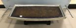 Uttermost decorative center piece, silver painted, mosaic top, 8"h., 35"h. Uttermost decorative center piece, silver painted, mosaic top, 8"h., 35"h.