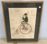 Decorative Print of Unicycle Bicycle Rider, signed, framed, matted, 32"h., 26"w. Decorative Print of Unicycle Bicycle Rider, signed, framed, matted, 32"h., 26"w.