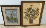 Two Needle Work Windmill 21"h., 17"w. and Flower Vase framed 24"h., 19"d. Two Needle Work Windmill 21"h., 17"w. and Flower Vase framed 24"h., 19"d.