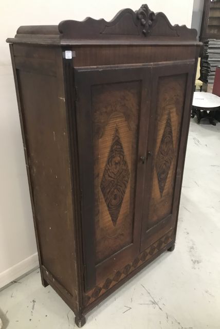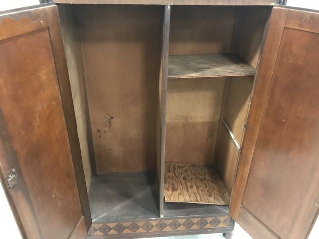 1930's-40's Depression Era Double Door Wardrobe, burl finish, needs work, 65"h., 37"w., 17"d. 1930's-40's Depression Era Double Door Wardrobe, burl finish, needs work, 65"h., 37"w., 17"d.