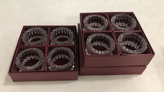Two Sets of Gorham Crystal Napkins Rings, two boxes with 4 in each. Two Sets of Gorham Crystal Napkins Rings, two boxes with 4 in each.