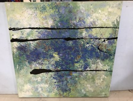 Large Abstract Dip Painting Canvas, signed, 48"sq. Large Abstract Dip Painting Canvas, signed, 48"sq.