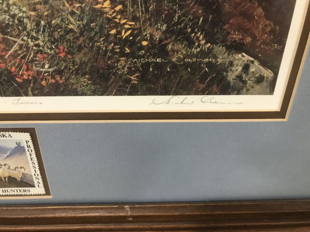 Alaska Association Professional Hunters, numbered 519/1200, signed Michael Coleman, framed 28"h., 23"w. Alaska Association Professional Hunters, numbered 519/1200, signed Michael Coleman, framed 28"h., 23"w.