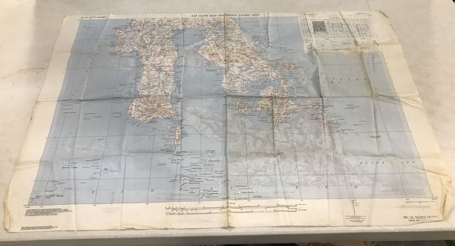 AAF Cloth Map Southwest Pacific Area, No. 24, some dark areas on fabric, 37" x 25" AAF Cloth Map Southwest Pacific Area, No. 24, some dark areas on fabric, 37" x 25"