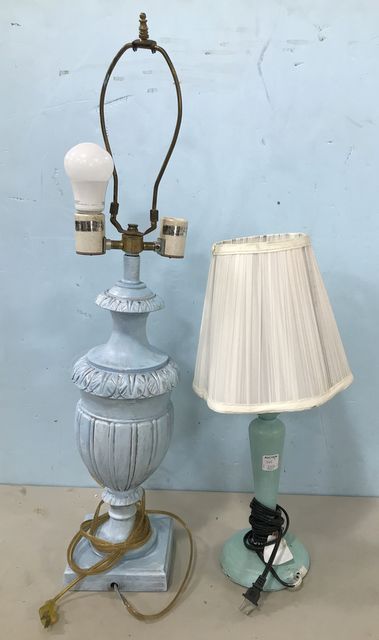 Painted Urn Style lamp (no shade) 30"h., and small painted wood lamp. Painted Urn Style lamp (no shade) 30"h., and small painted wood lamp.