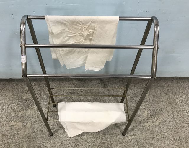 Small Vintage Metal Towel Rack, 29"h., 17"w. Small Vintage Metal Towel Rack, 29"h., 17"w.