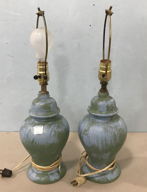 1179 Pair of Painted Glass Vase Lamps