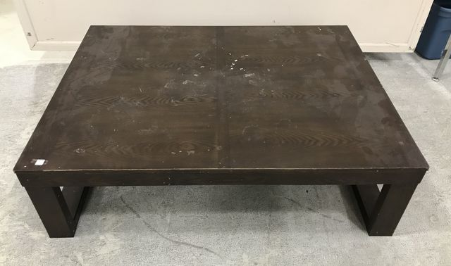 Rectangle Cock Tail Farm Style Coffee Table, dark finish, finish needs work or painted, 16"h., 56"w., 42"d. Rectangle Cock Tail Farm Style Coffee Table, dark finish, finish needs work or painted, 16"h., 56"w., 42"d.