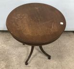 Imperial Round Lamp Table, pedestal table, mahogany, finish wear, 27"h., 24"w. Imperial Round Lamp Table, pedestal table, mahogany, finish wear, 27"h., 24"w.