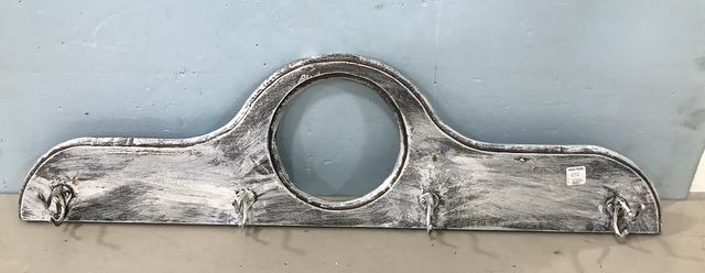 Painted white dresser back splash converted to coat rack, 36"w. Painted white dresser back splash converted to coat rack, 36"w.