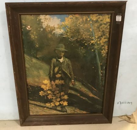 Framed Print of Boy, print of cardboard, wood frame, 28"h., 22"w. Framed Print of Boy, print of cardboard, wood frame, 28"h., 22"w.