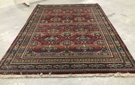 MECCA Machine Made Area Rug, Red, 7'10 x 10'11, shows stains on underneath, but now noticeable on top, made in Saudi Arabia. MECCA Machine Made Area Rug, Red, 7'10 x 10'11, shows stains on underneath, but now noticeable on top, made in Saudi Arabia.
