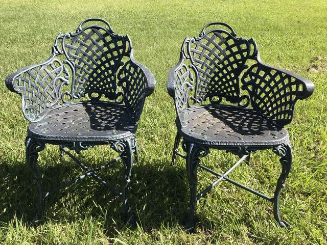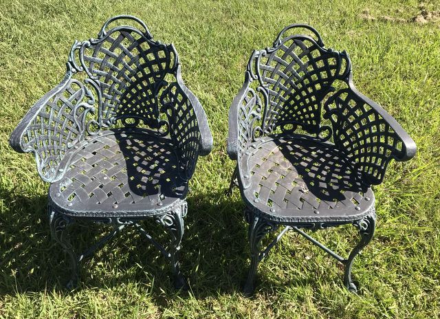 675 Two Ornate Aluminum Outdoor Arm Chairs