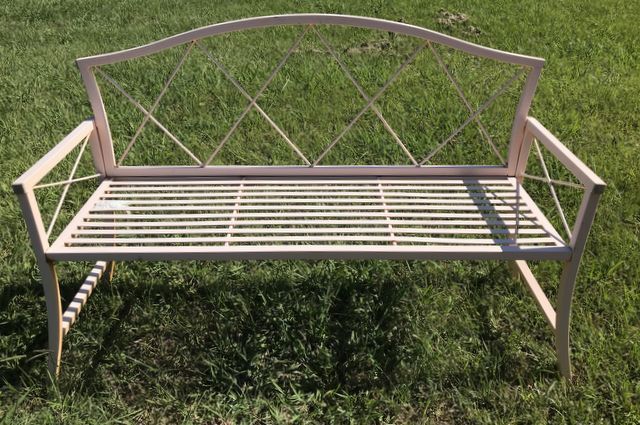 White Metal Outdoor Bench, tube frame. White Metal Outdoor Bench, tube frame.