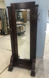 Antique Empire Style Hall Tree, metal hooks, one needs screws, beveled mirror, has some wear, 74"h., 32"w. Antique Empire Style Hall Tree, metal hooks, one needs screws, beveled mirror, has some wear, 74"h., 32"w.