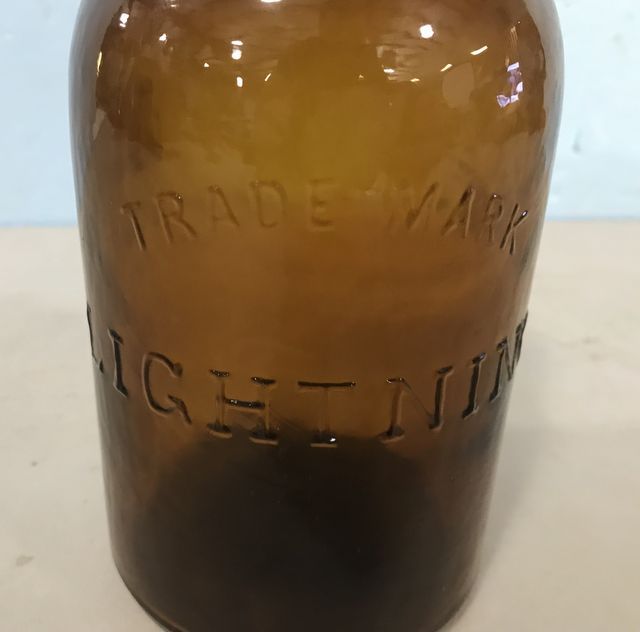 Vintage Collectible Amber Lightning Jar, mason jar, 8"h. Rare collectible. Vintage Collectible Amber Lightning Jar, mason jar, 8"h. Rare collectible.