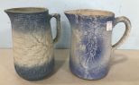 Two Light Blue Salt Glaze Pitcher, stoneware, age wear, 8"h. Two Light Blue Salt Glaze Pitcher, stoneware, age wear, 8"h.