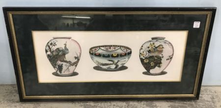 Signed Artist Print of Chinese Vases I, signed, numbered 12/950, framed 17"h., 33"w. Signed Artist Print of Chinese Vases I, signed, numbered 12/950, framed 17"h., 33"w.