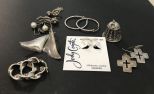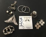 Hoop .925 earrings, .925 cross earrings, twist loop .925 earrings, 3 pair of .925 earrings, .925 bell pendent, Jody Coyote .925 earrings. Hoop .925 earrings, .925 cross earrings, twist loop .925 earrings, 3 pair of .925 earrings, .925 bell pendent, Jody Coyote .925 earrings.
