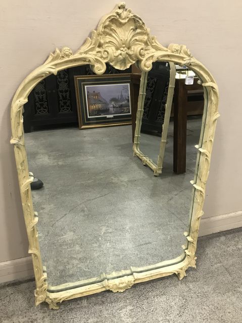 Uttermost French Style Painted Wall Mirrors, painted distressed, ornate polyfoam, 41"h., 26"w. Uttermost French Style Painted Wall Mirrors, painted distressed, ornate polyfoam, 41"h., 26"w.