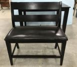 Modern mission style dark finish tall table 36"h., 54"w., 36"d., and matching bench with vinyl bench 43"h., 39"w. Modern mission style dark finish tall table 36"h., 54"w., 36"d., and matching bench with vinyl bench 43"h., 39"w.
