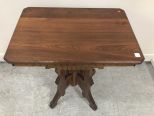 Vintage East Lake Parlor Lamp Table, carved border trim, base, rectangle top, 28"h., 28"w., 19"d. Vintage East Lake Parlor Lamp Table, carved border trim, base, rectangle top, 28"h., 28"w., 19"d.