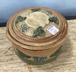 Majolica yellow stoneware two handled casserole, 4"h., 8"dia. Majolica yellow stoneware two handled casserole, 4"h., 8"dia.