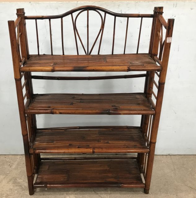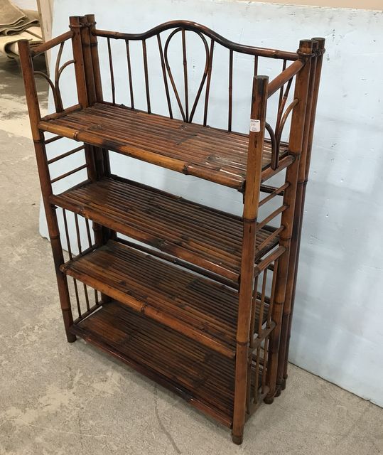 Bamboo Four Shelf Bookcase, fold out, fold up option, has a little wobble, 45"h., 31"w. Bamboo Four Shelf Bookcase, fold out, fold up option, has a little wobble, 45"h., 31"w.