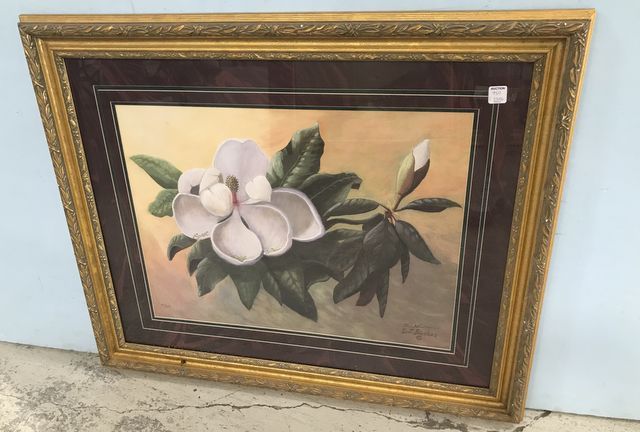 Magnolia print signed DJ. Busbee, 212/2350, framed and glassed 29"h., 35"w. Magnolia print signed DJ. Busbee, 212/2350, framed and glassed 29"h., 35"w.