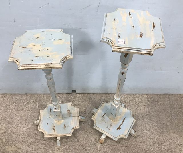 Hand Made Distressed Painted Plant Stands, 32"h., 27"h. Hand Made Distressed Painted Plant Stands, 32"h., 27"h.